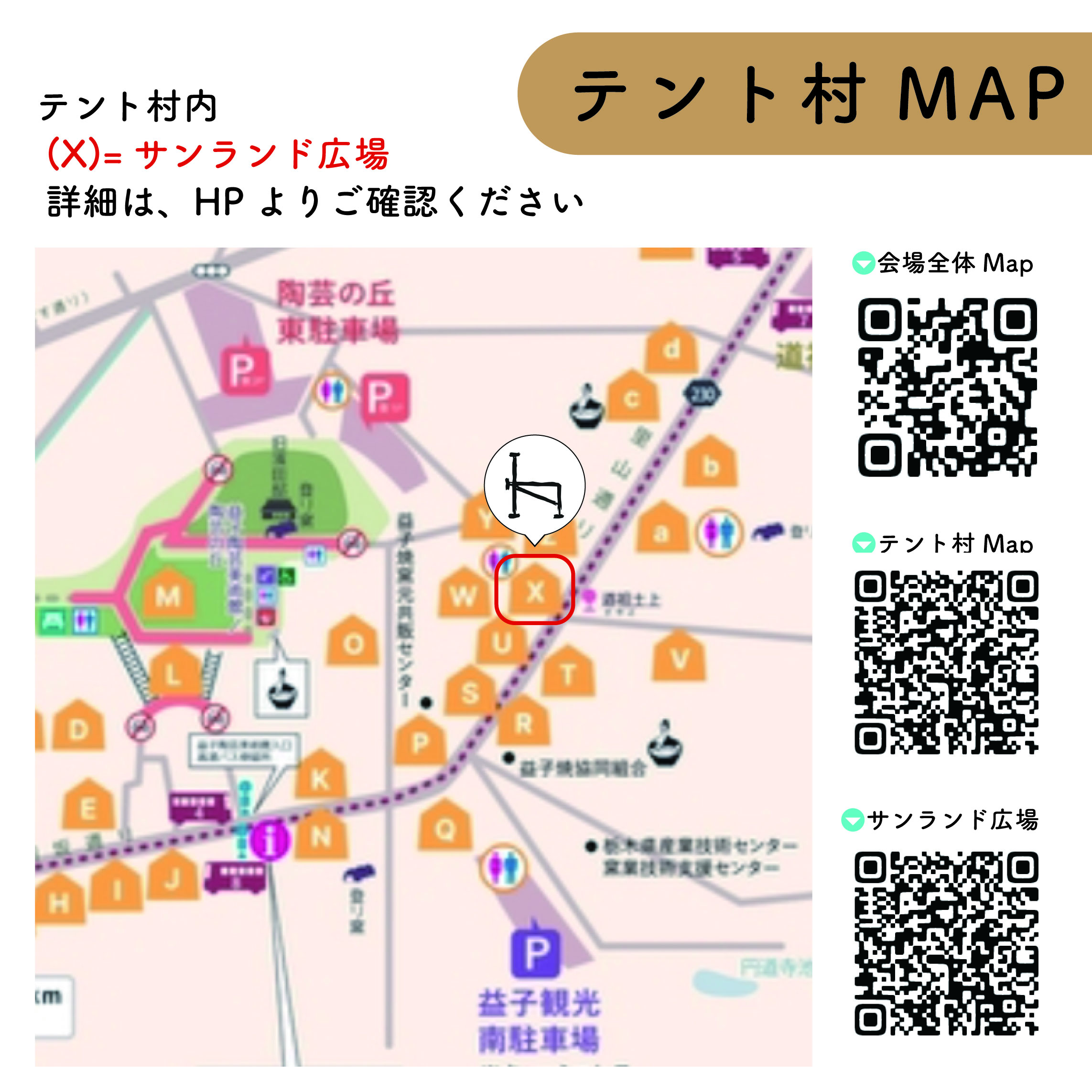 ▽益子陶器市ガイドマップ 黄色いテントマーク(X)