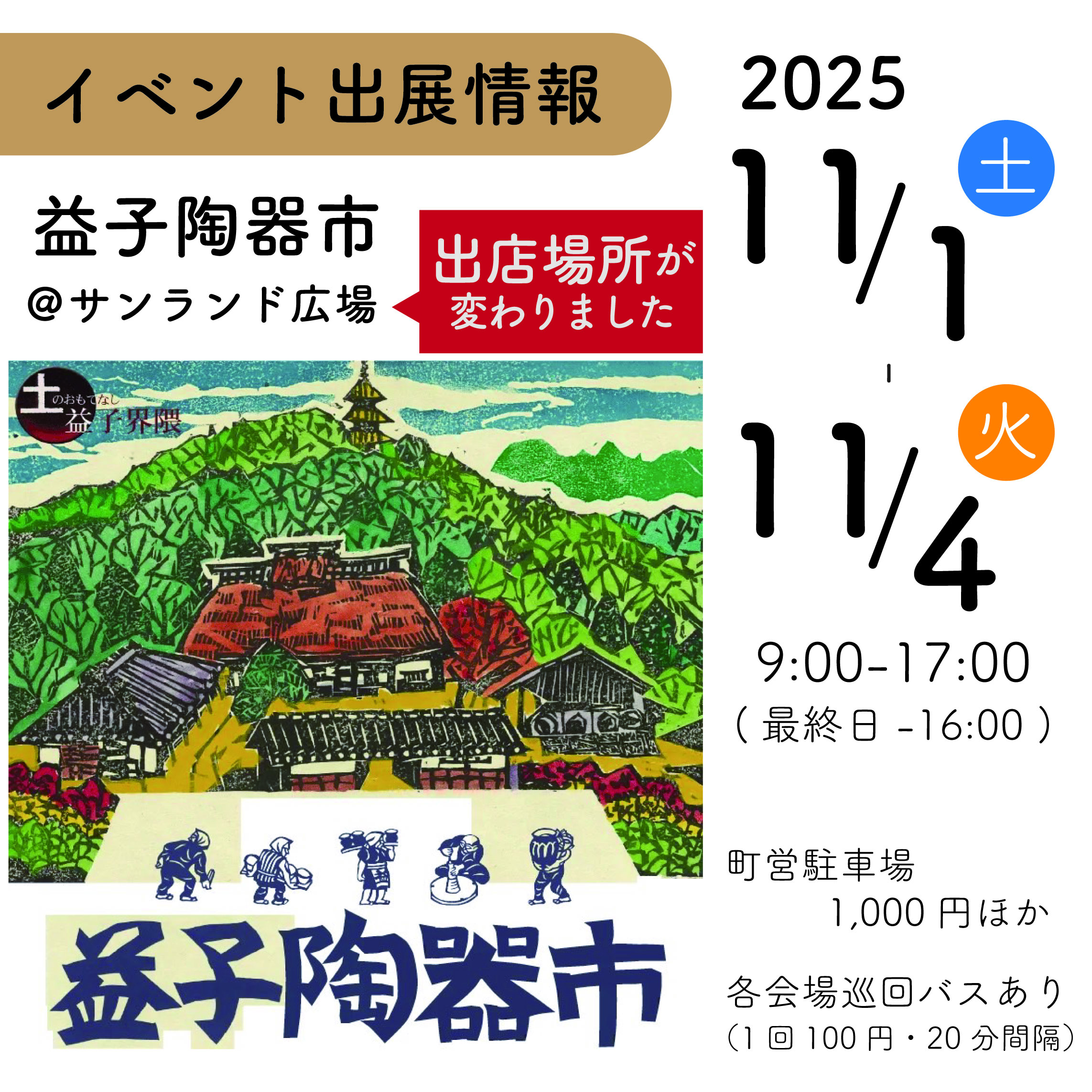 益子陶器市に出展いたします ※出展場所が変更となりました
